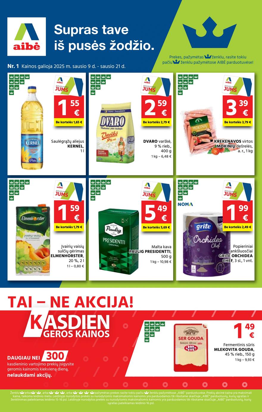 Aibė akcijų leidinys Nr 1 ir kitos akcijos vienoje vietoje (galioja nuo 2025-01-09 iki 2025-01-21) Nuolaidos ir kainos prekybos tinklo Aibė parduotuvėse. Geriausi šio prekybos tinklo savaitiniai pasiūlymai.