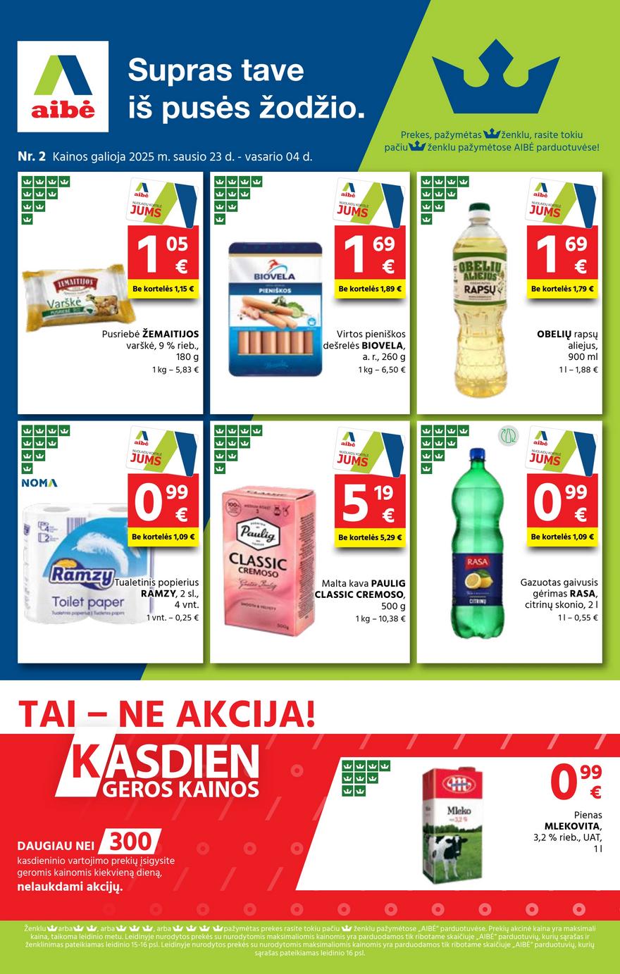 Aibė akcijų leidinys Nr 2 ir kitos akcijos vienoje vietoje (galioja nuo 2025-01-23 iki 2025-02-04) Savaitinis Aibė prekybos tinklo nuolaidų ir akcijų leidinys