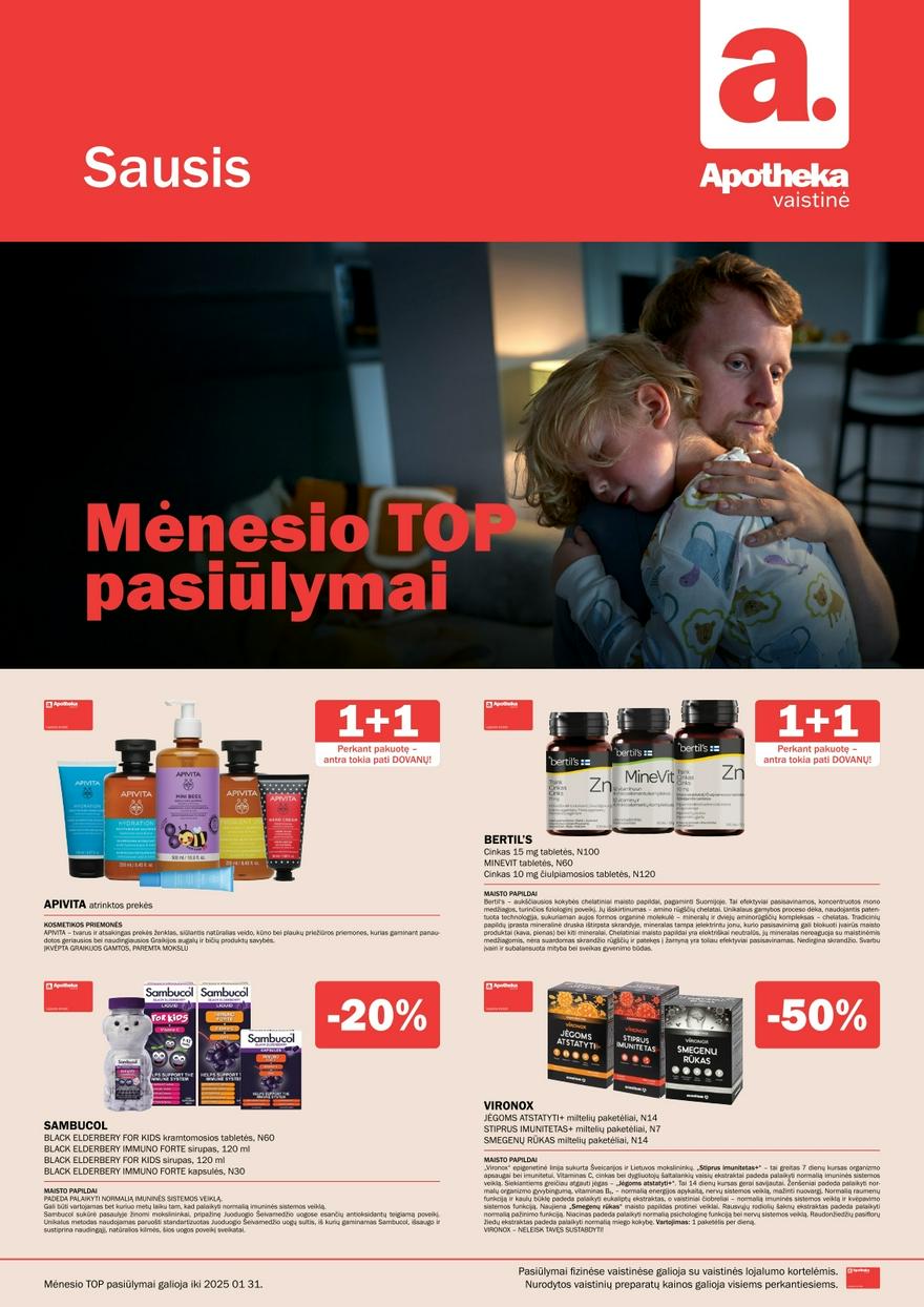 Apotheka vaistinės leidinys ir kitos akcijos vienoje vietoje (galioja nuo 2025-01-01 iki 2025-01-31) Sausio mėnesio vaistinių tinklo apotheka leidinys ir nuolaidos.