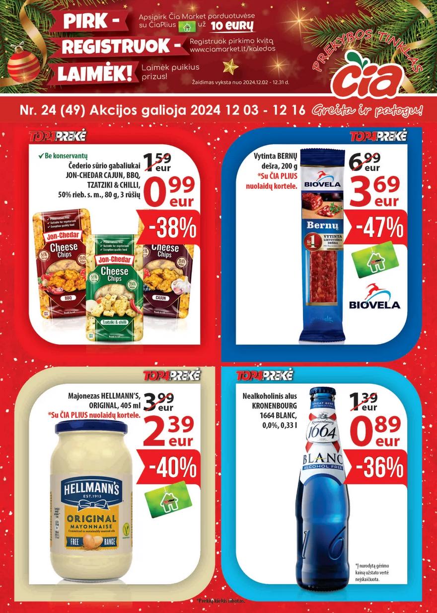 Čia market akcijų leidinys ir kitos akcijos vienoje vietoje (galioja nuo 2024-12-03 iki 2024-12-16) Naujas prekybos tinklo Čia market savaitinių pasiūlymų leidinys