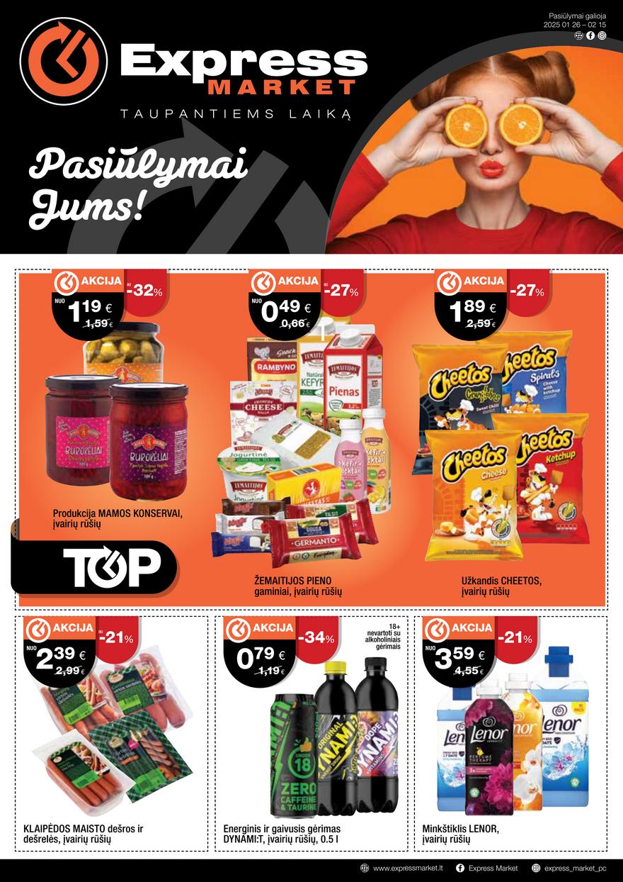 Express market akcijų leidinys ir kitos akcijos vienoje vietoje (galioja nuo 2025-01-26 iki 2025-02-15) Naujas mėnesio pasiūlymų ir nuolaidų leidinys