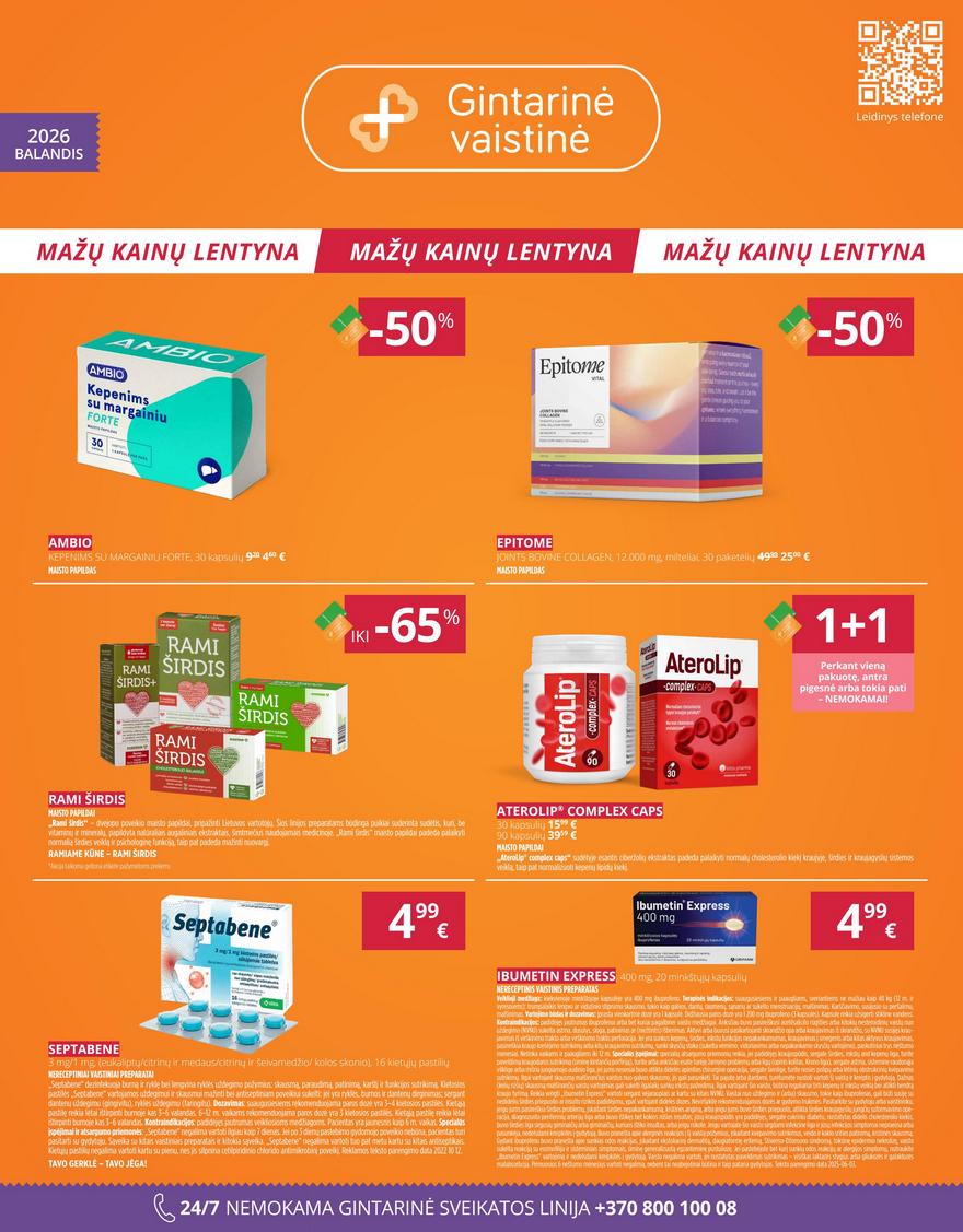 Gintarinės vaistinės akcijų leidinys ir kitos akcijos vienoje vietoje (galioja nuo 2026-04-01 iki 2026-04-30) Balandžio mėnesio nuolaidos ir kainos vaistinėse. Atnaujinti gintarinės vaistinės pasiūlymai.