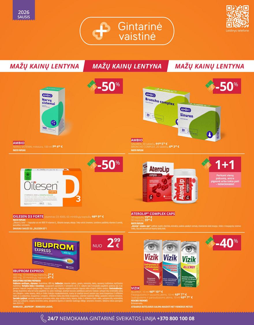 Gintarinės vaistinės akcijų leidinys ir kitos akcijos vienoje vietoje (galioja nuo 2026-01-01 iki 2026-01-31) Nuolaidos Euro vaistinėse. Naujas mėnesio pasiūlymų leidinys