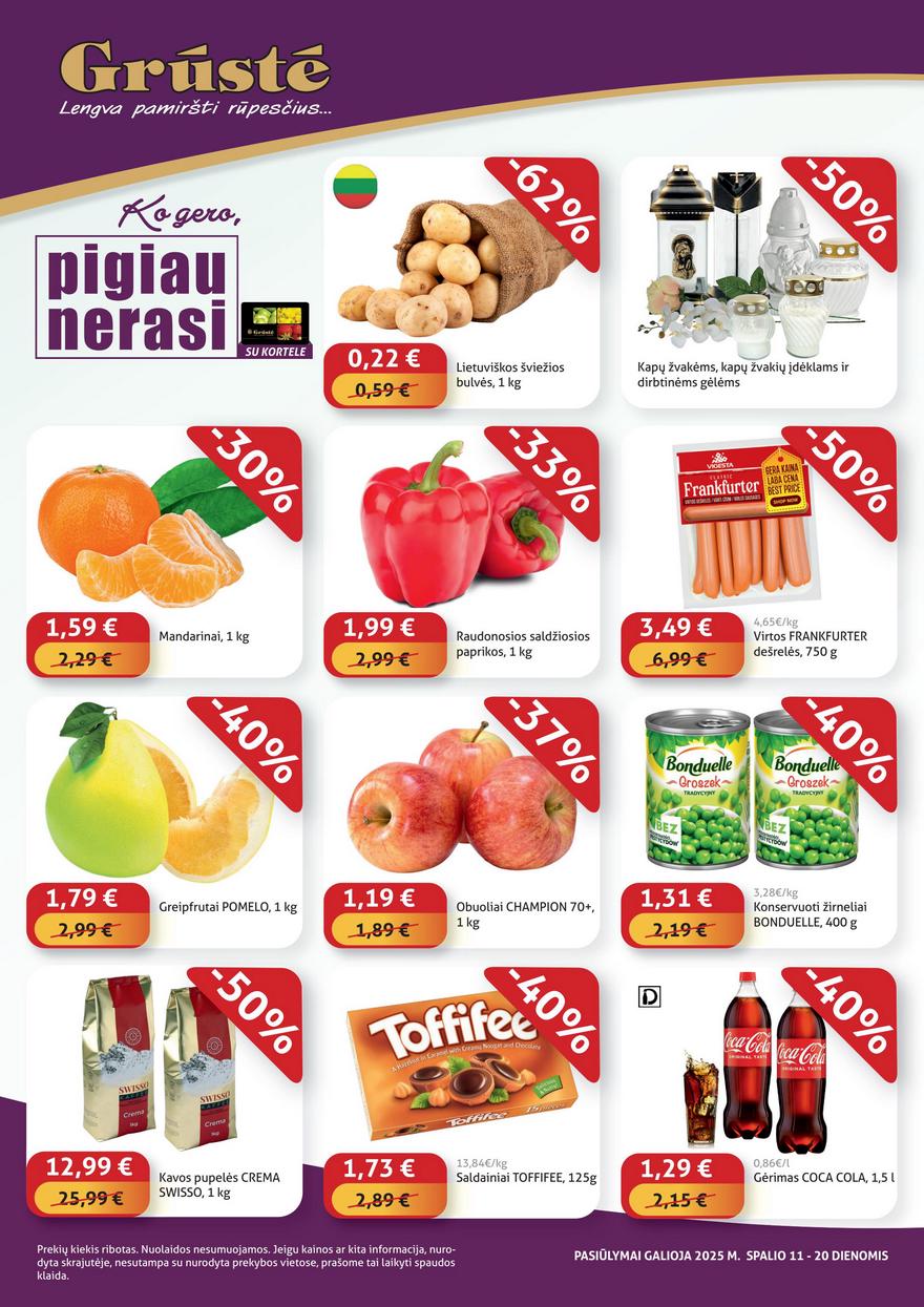 Grūstė akcijų leidinys ir kitos akcijos vienoje vietoje (galioja nuo 2025-10-11 iki 2025-10-20) Nuolaidos Grūstės parduotuvėse nuo savaitgalio. Atnaujinti pasiūlymai akcijų leidinyje.