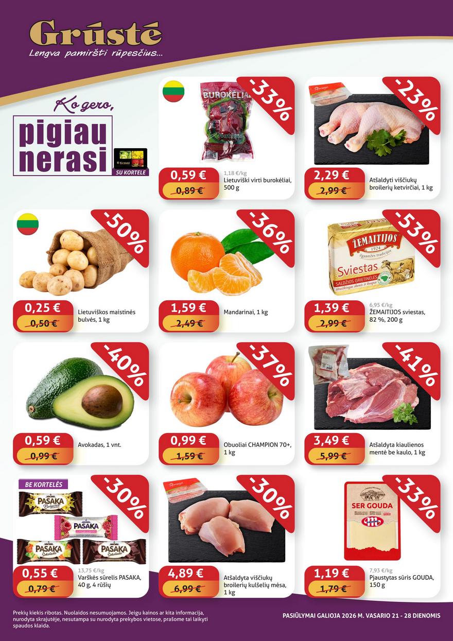 Grūstė akcijų leidinys ir kitos akcijos vienoje vietoje (galioja nuo 2026-02-21 iki 2026-02-28) Nuolaidos Grūstės akcijų leidinyje šią savaitę.