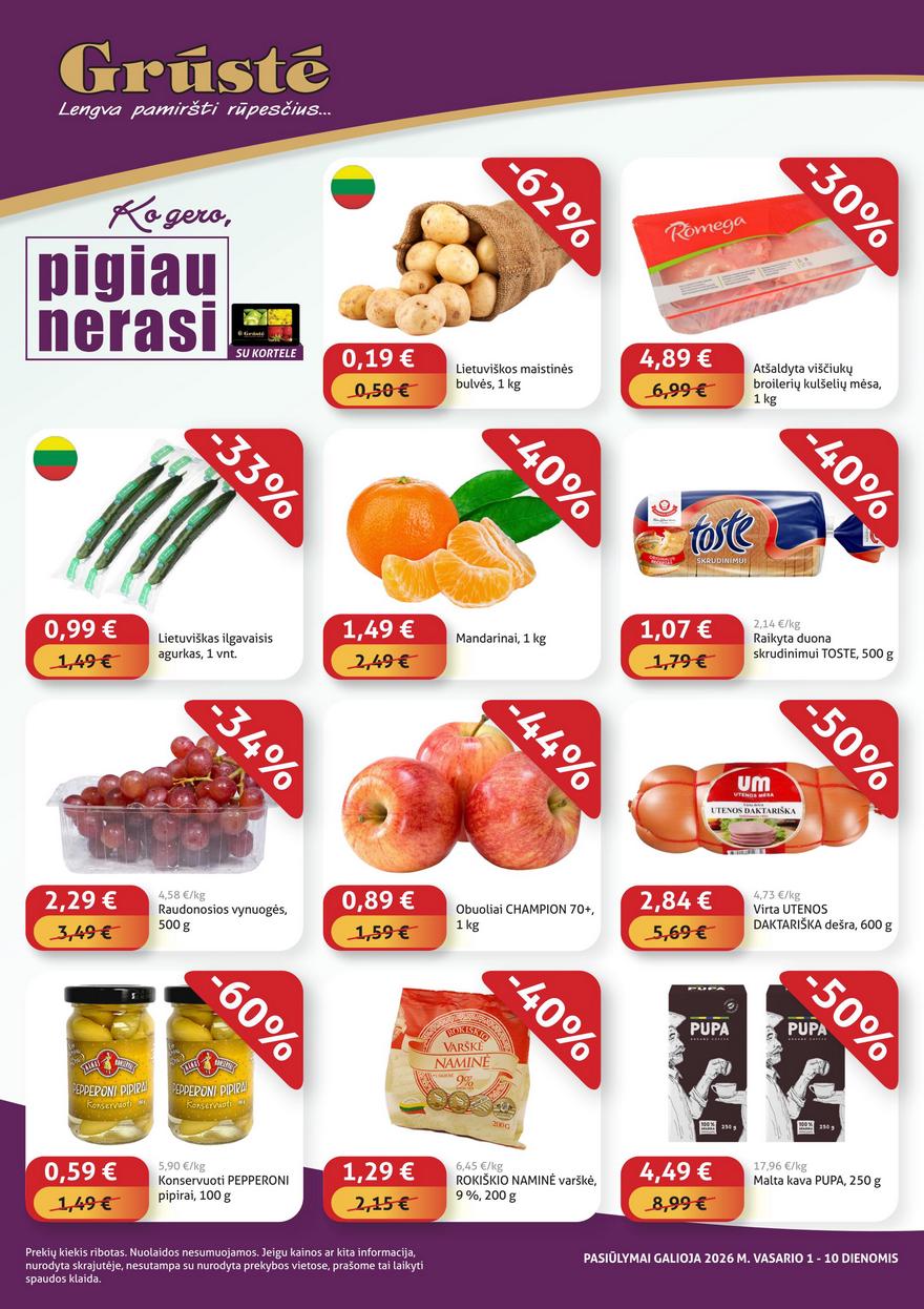 Grūstė akcijų leidinys ir kitos akcijos vienoje vietoje (galioja nuo 2026-02-01 iki 2026-02-10) Sekmadienio pasiūlymai Grūstės leidinyje. Naujas pasiūlymų leidinys apsiperkantiems parduotuvėse.