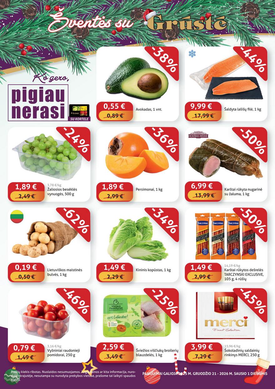Grūstė akcijų leidinys ir kitos akcijos vienoje vietoje (galioja nuo 2025-12-21 iki 2026-01-01) Nuolaidos ir pasiūlymai nuo pirmadienio parduotuvėse. Naujas leidinys ieškantiems patrauklių pasiūlymų.
