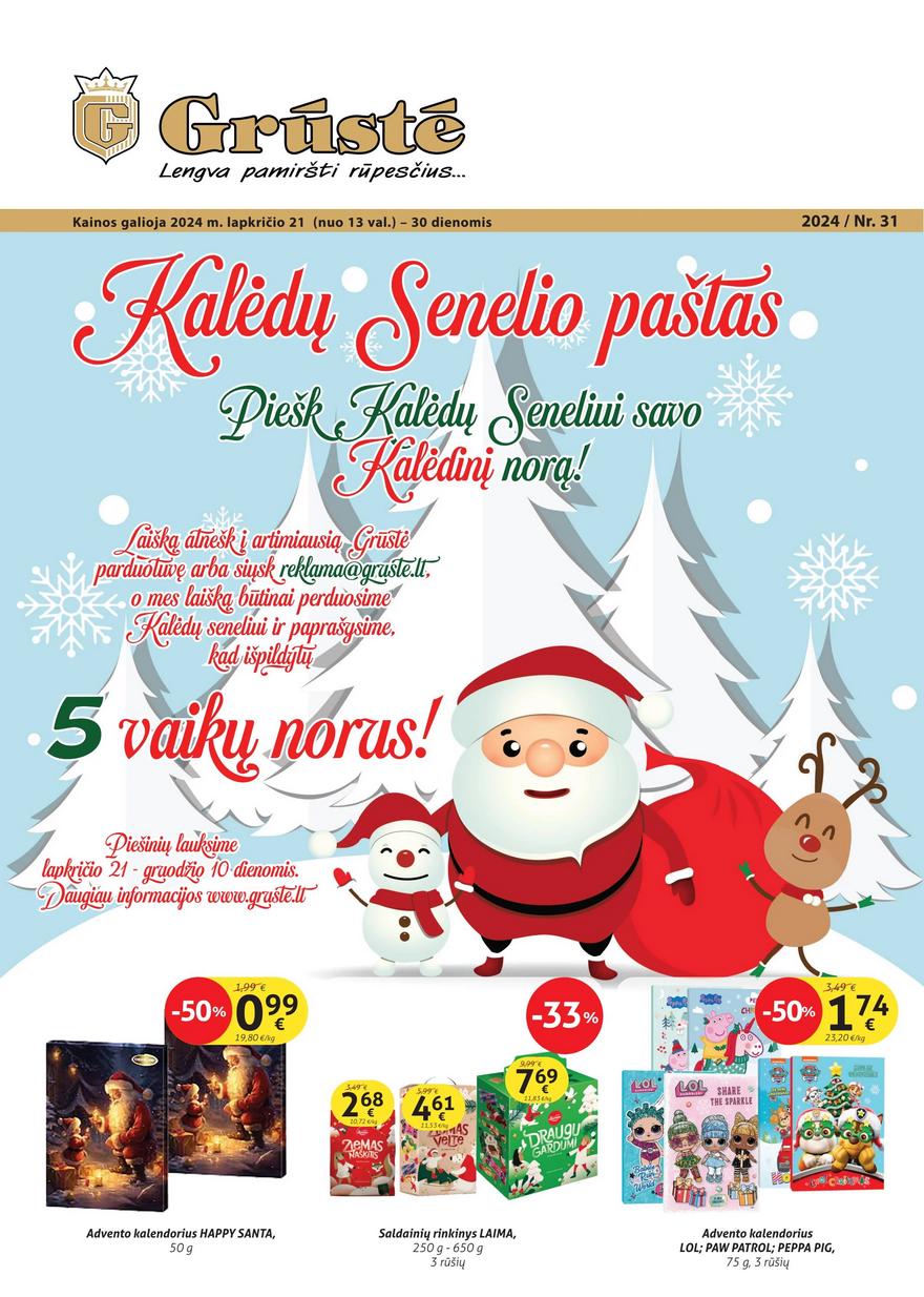 Grūstė leidinys ir kitos akcijos vienoje vietoje (galioja nuo 2024-11-21 iki 2024-11-30) Kalėdų senelio paštas. Naujas prekybos centro Grūstė leidinys ir akcijos.