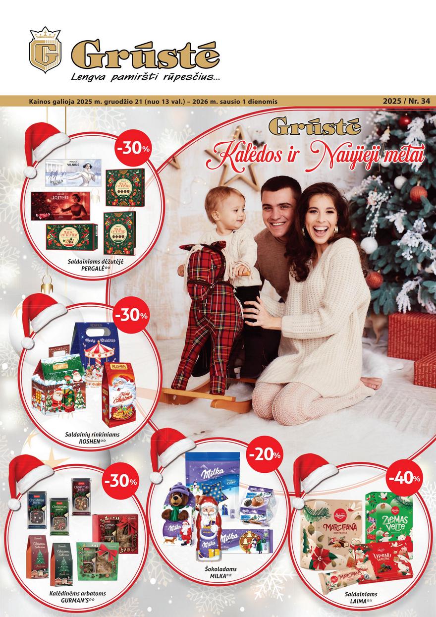 Grūstė leidinys ir kitos akcijos vienoje vietoje (galioja nuo 2025-12-21 iki 2026-01-01) Naujas pasiūlymų ir nuolaidų leidinys apsiperkantiems ir ieškantiems gerų pasiūlymų Grūstėje.