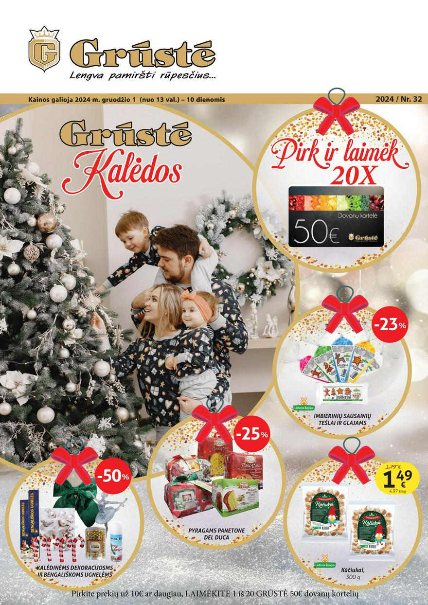 Grūstė leidinys Nr. 32 ir kitos akcijos vienoje vietoje (galioja nuo 2024-12-01 iki 2024-12-10) Naujas prekybos tinklo Grūstė leidinys