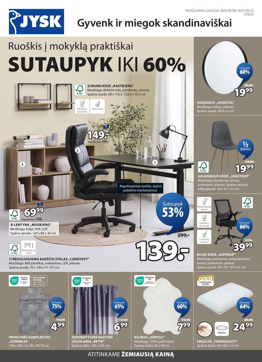 Jysk akcijų leidinys ir kitos akcijos vienoje vietoje (galioja nuo 2025-09-09 iki 2025-09-22) Nuolaidos ir kainos jysk parduotuvėse.