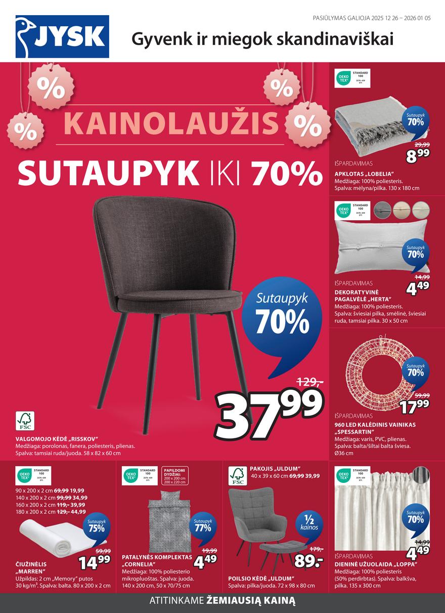 Jysk akcijų leidinys ir kitos akcijos vienoje vietoje (galioja nuo 2025-12-26 iki 2026-01-05) Metų pabaigos pasiūlymai naujausiame Jysk leidinyje. Akcijos ir nuolaidos iki pat sausio pradžios.
