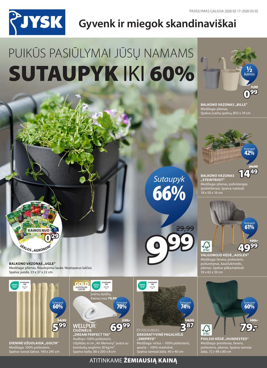 Jysk akcijų leidinys ir kitos akcijos vienoje vietoje (galioja nuo 2026-02-17 iki 2026-03-02) Savaitės akcijos Jysk leidinyje. Leidinio naujienos ir pasiūlymai.