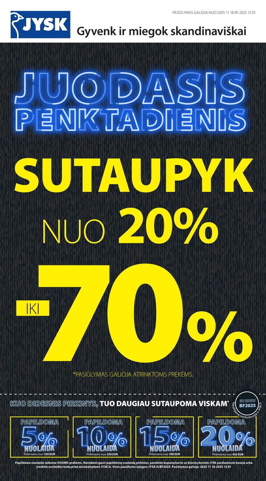 Jysk akcijų leidinys ir kitos akcijos vienoje vietoje (galioja nuo 2025-11-18 iki 2025-12-01) Nuolaidos Jysk parduotuvėse. Naujas leidinys ir aktualūs pasiūlymai artėjant šventėms