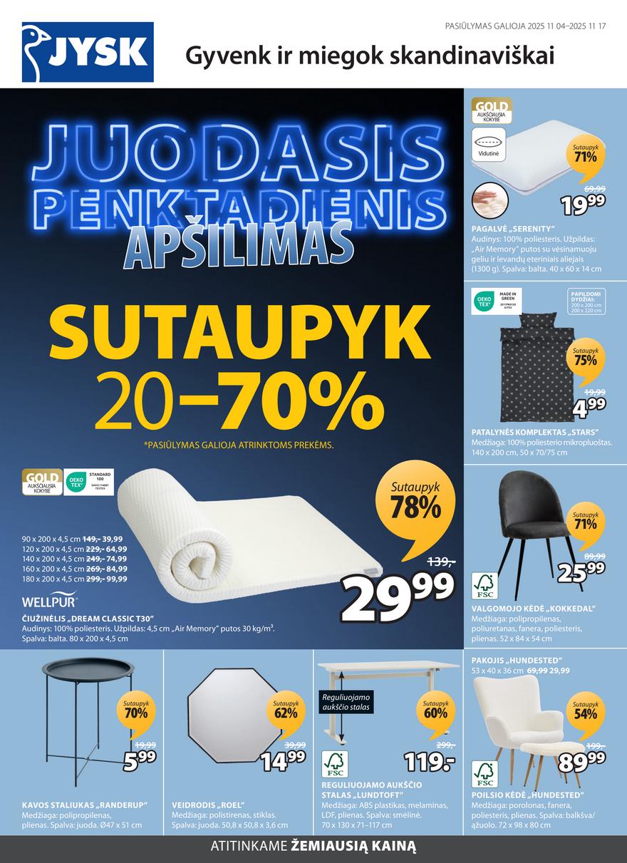 Jysk akcijų leidinys ir kitos akcijos vienoje vietoje (galioja nuo 2025-11-04 iki 2025-11-17) Antradienio akcijos Jysk parduotuvėse. Naujas nuolaidų ir kainų leidinys.