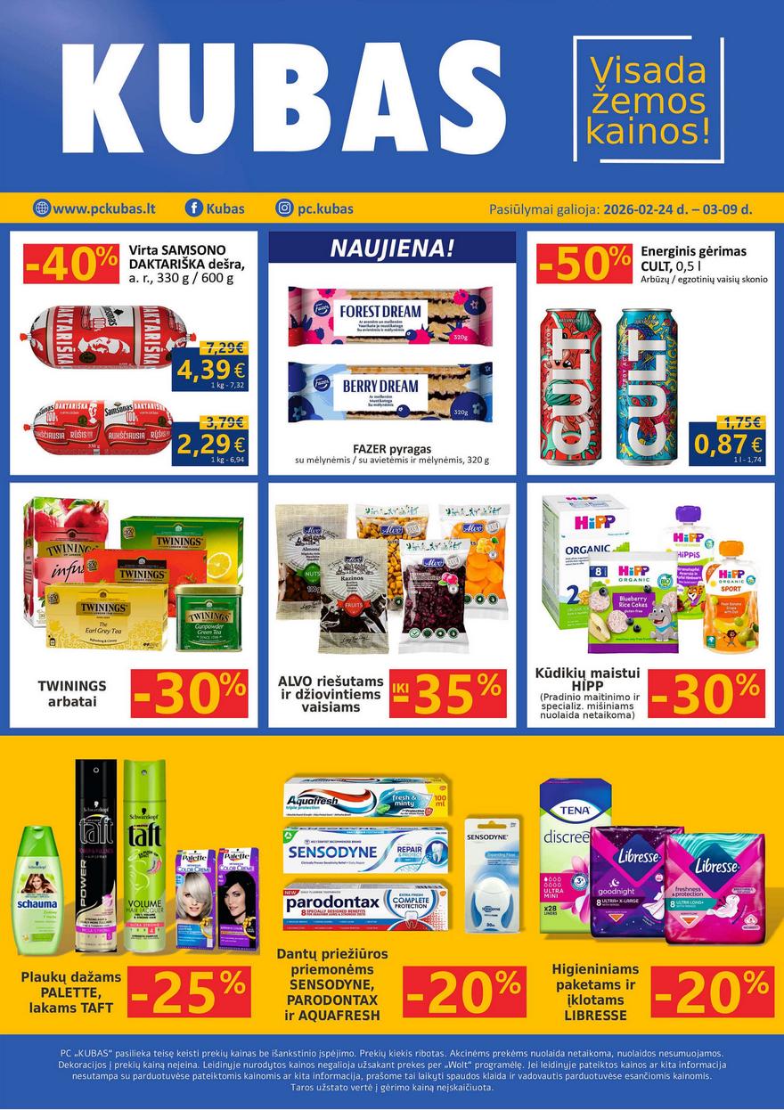 Kubas akcijų leidinys ir kitos akcijos vienoje vietoje (galioja nuo 2026-02-24 iki 2026-03-09) Nuolaidos ir kainos Kubo parduotuvėse. Atnaujintas akcijų ir kainų leidinys.