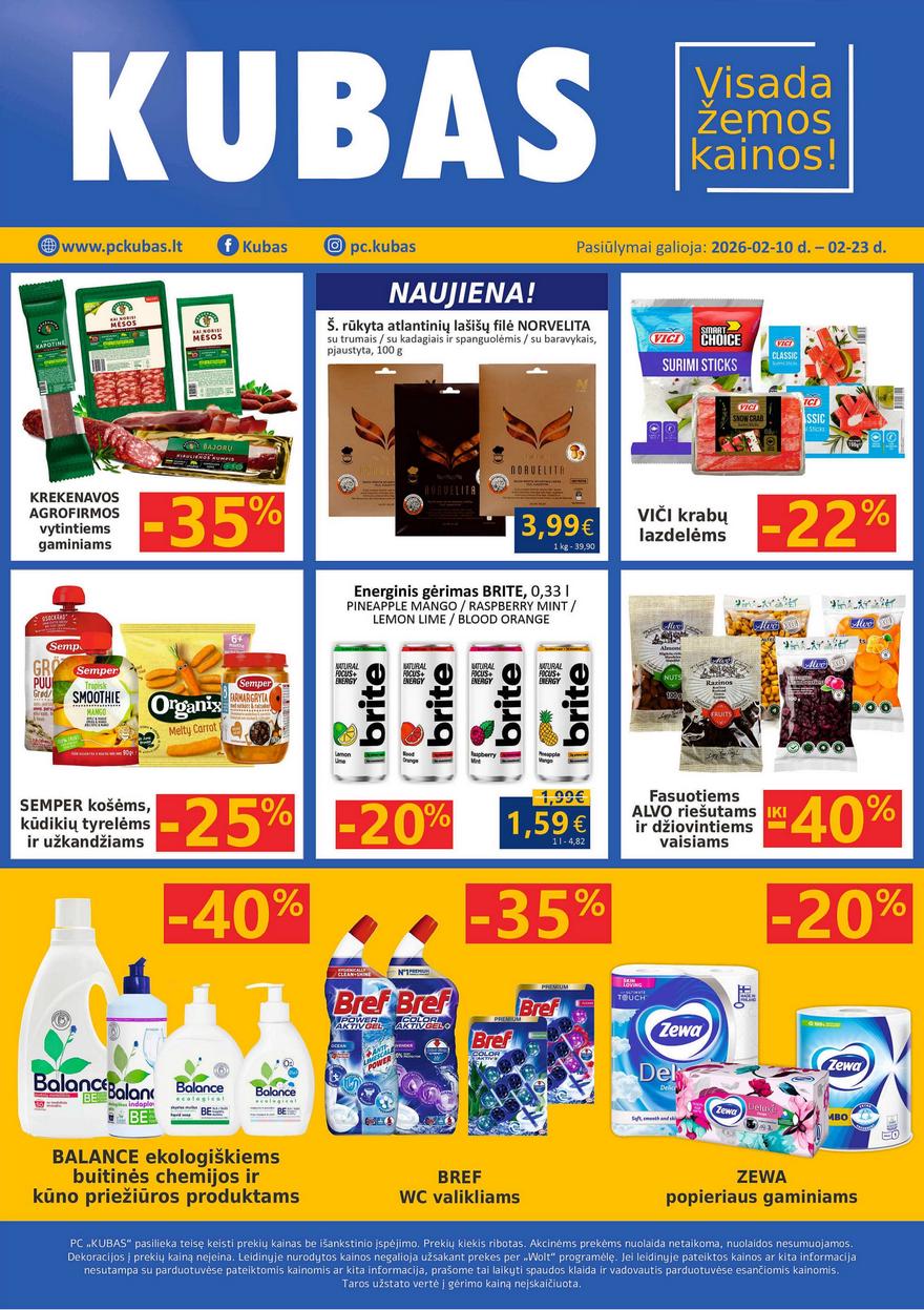Kubas akcijų leidinys ir kitos akcijos vienoje vietoje (galioja nuo 2026-02-10 iki 2026-02-23) Nuolaidos ir kainos Kubo parduotuvėse nuo antradienio. Atnaujintas pasiūlymų leidinys.
