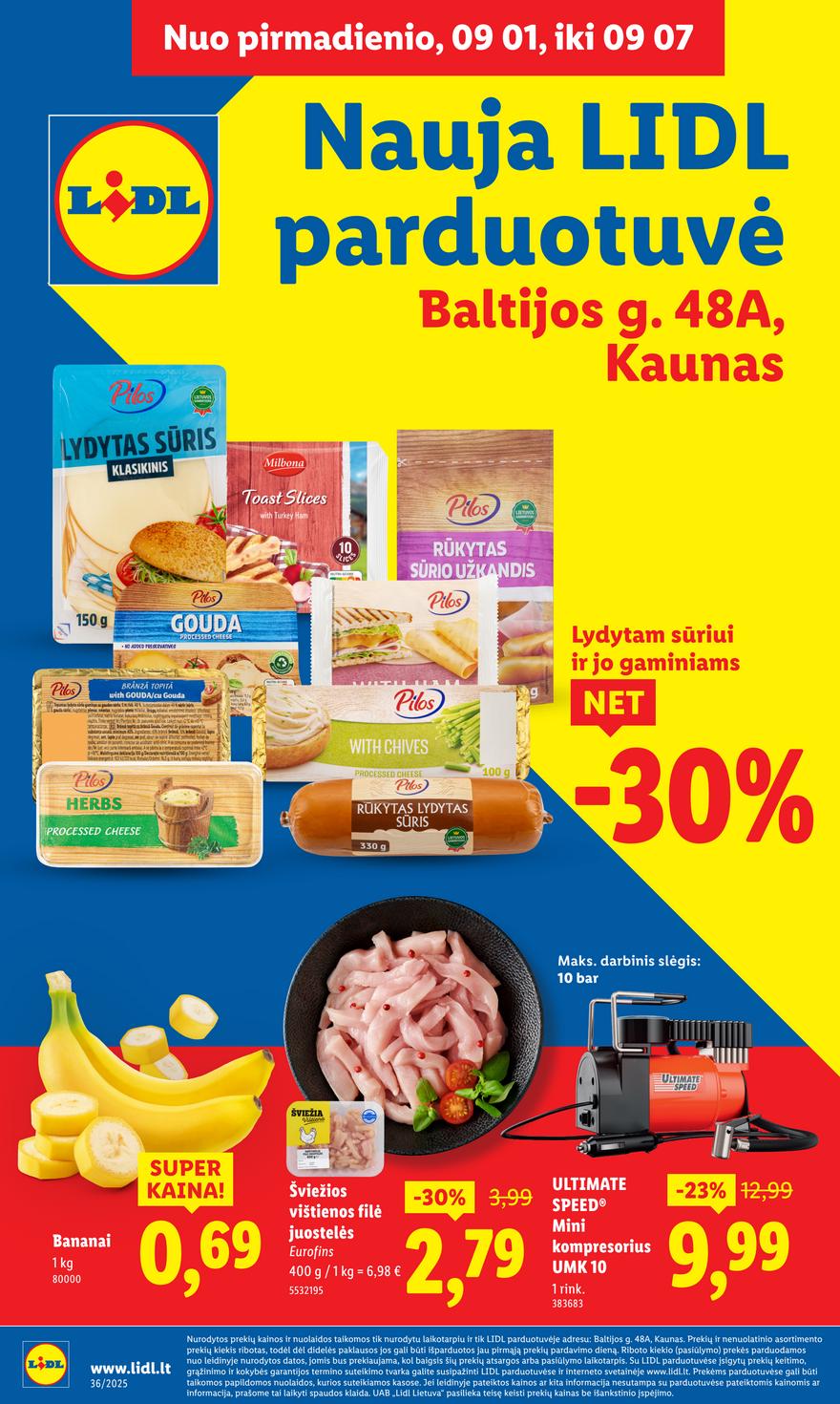 Lidl atidarymo leidinys ir kitos akcijos vienoje vietoje (galioja nuo 2025-09-01 iki 2025-09-07) Naujas Lidl parduotuvė Kaune. Nuolaidos ir kainos atidarymo savaitę.