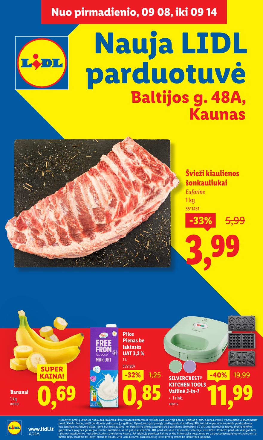 Lidl Kaunas atidarymo leidinys ir kitos akcijos vienoje vietoje (galioja nuo 2025-09-08 iki 2025-09-14) Kaune atidaroma nauja prekybos tinklo Lidl parduotuvė. Atidarymo proga taikomos specialios nuolaidos ir kainos atrinktam asortimentui. Apie pasiūlymus sužinokite naujausiame leidinyje.