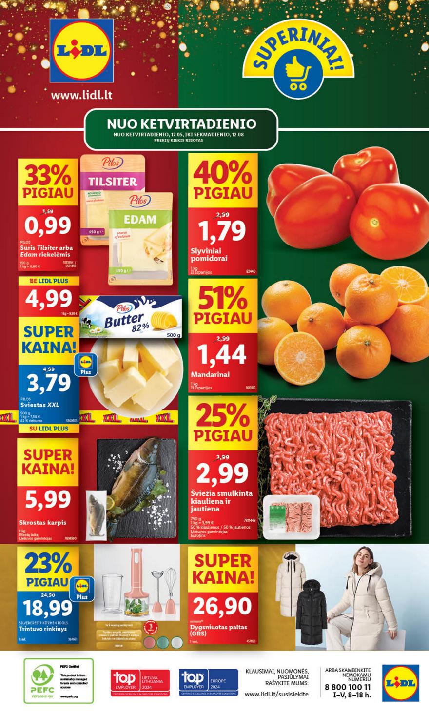 Lidl savaitgalio leidinys ir kitos akcijos vienoje vietoje (galioja nuo 2024-12-05 iki 2024-12-08) Akcijos ir nuolaidos šį savaitgalį Lidl prekybos tinklo parduotuvėse. Naujas leidinys