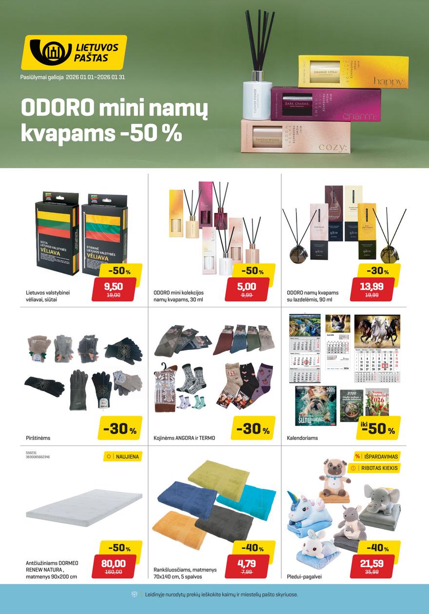 Lietuvos pašto leidinys ir kitos akcijos vienoje vietoje (galioja nuo 2026-01-01 iki 2026-01-31) Sausio mėnesio pasiūlymai pašto leidinyje.