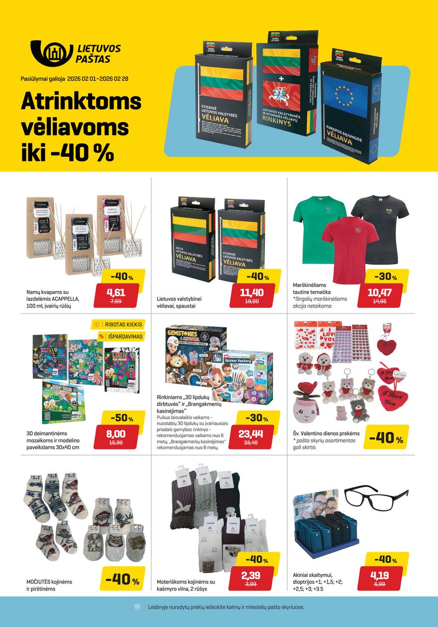 Lietuvos pašto leidinys ir kitos akcijos vienoje vietoje (galioja nuo 2026-02-01 iki 2026-02-28) Mėnesio pasiūlymai Lietuvos pašto akcijų leidinyje. Sužinokite apie naujausias akcijas peržiūrėję vasario mėnesio leidinį.