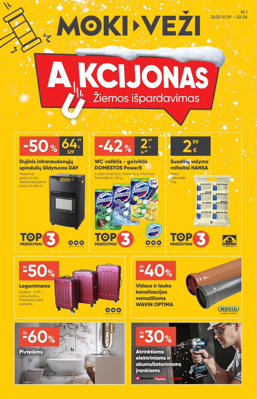 Moki veži akcijų leidinys ir kitos akcijos vienoje vietoje (galioja nuo 2025-01-09 iki 2025-02-04) Naujas 2025 metų statybinių medžiagų parduotuvių tinklo leidinys