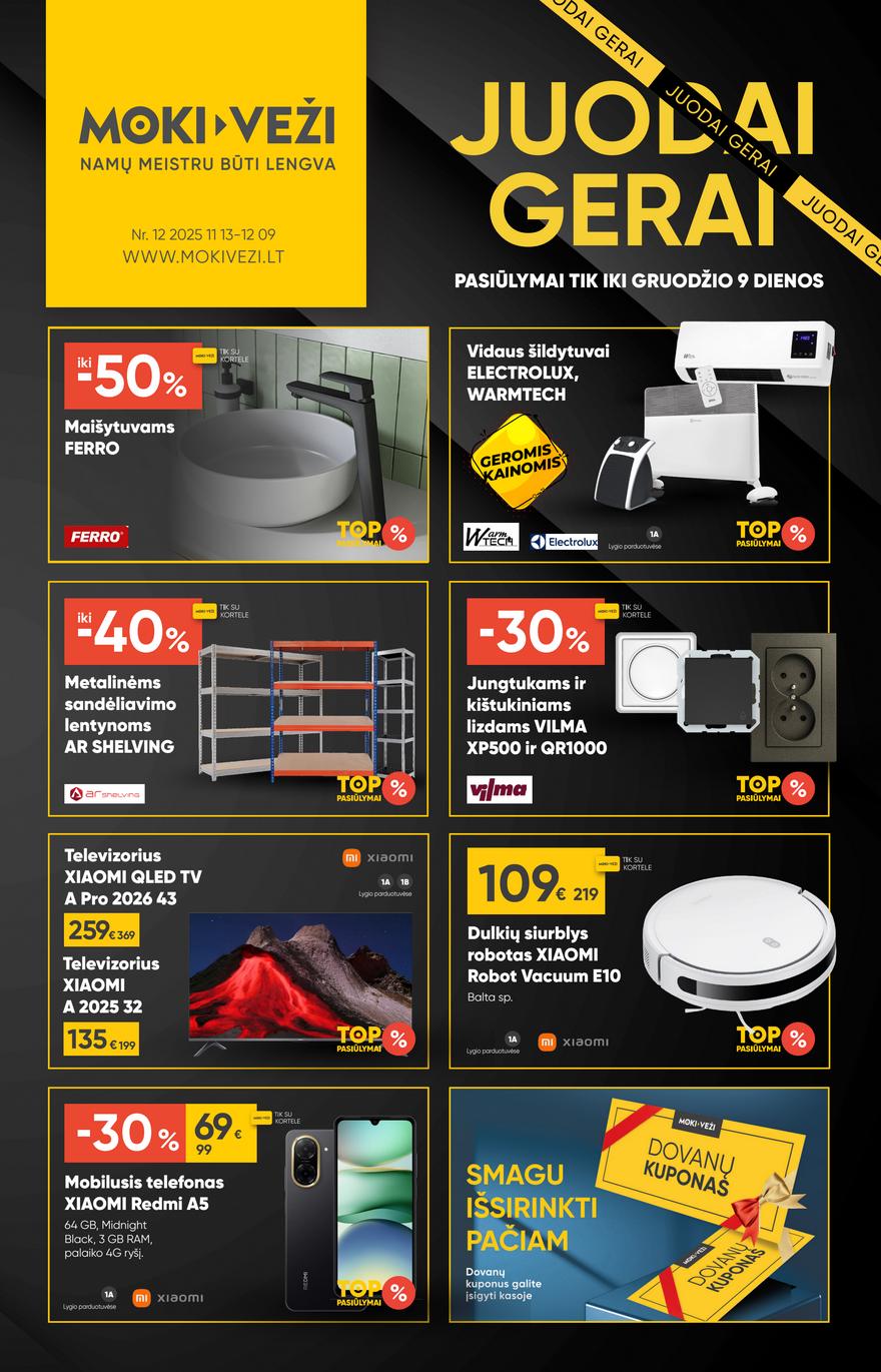 Moki veži akcijų leidinys Nr 12 ir kitos akcijos vienoje vietoje (galioja nuo 2025-11-13 iki 2025-12-09) Juodojo penktadienio nuolaidos ir pasiūlymai Moki veži parduotuvėse. Naujas mėnesio akcijų leidinys