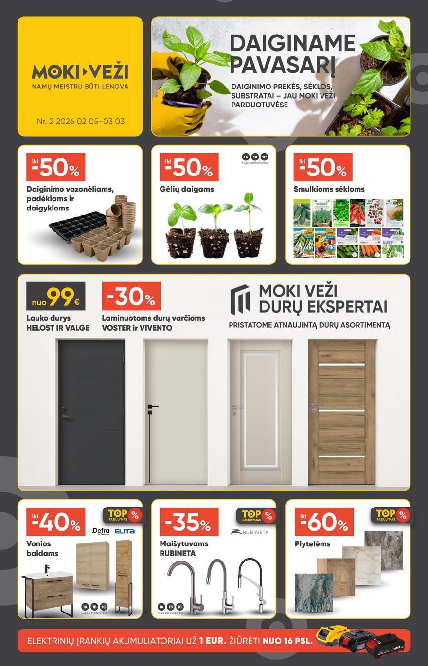Moki veži akcijų leidinys Nr 2 ir kitos akcijos vienoje vietoje (galioja nuo 2026-02-05 iki 2026-03-03) Moki veži statybos ir namų prekių tinklo vasario mėnesio pasiūlymų leidinys.
