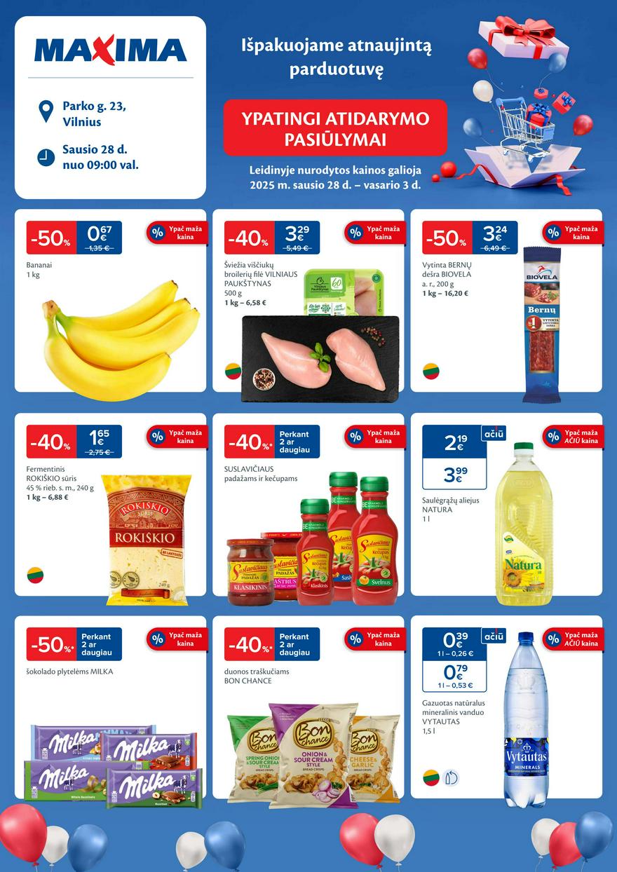 Nauja Maxima parduotuvė Vilniuje ir kitos akcijos vienoje vietoje (galioja nuo 2025-01-28 iki 2025-02-03) Nuolaidos ir atidarymo pasiūlymai Parko g. 23 Vilnius. Nauja parduotuvė atidaroma sausio 28 dieną.