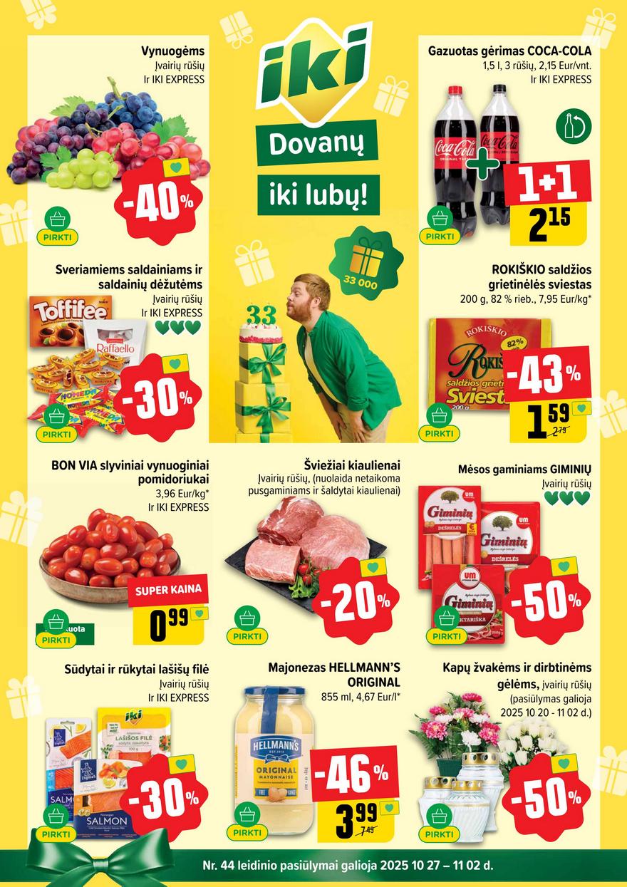 Naujausias Iki leidinys Nr 44 ir kitos akcijos vienoje vietoje (galioja nuo 2025-10-27 iki 2025-11-02) Rytojaus nuolaidos ir kainos naujausiame Iki prekybos tinklo akcijų leidinyje. Geriausi pirmadienio ir visos likusios savaitės pasiūlymai apsiperkantiems Iki parduotuvėse.