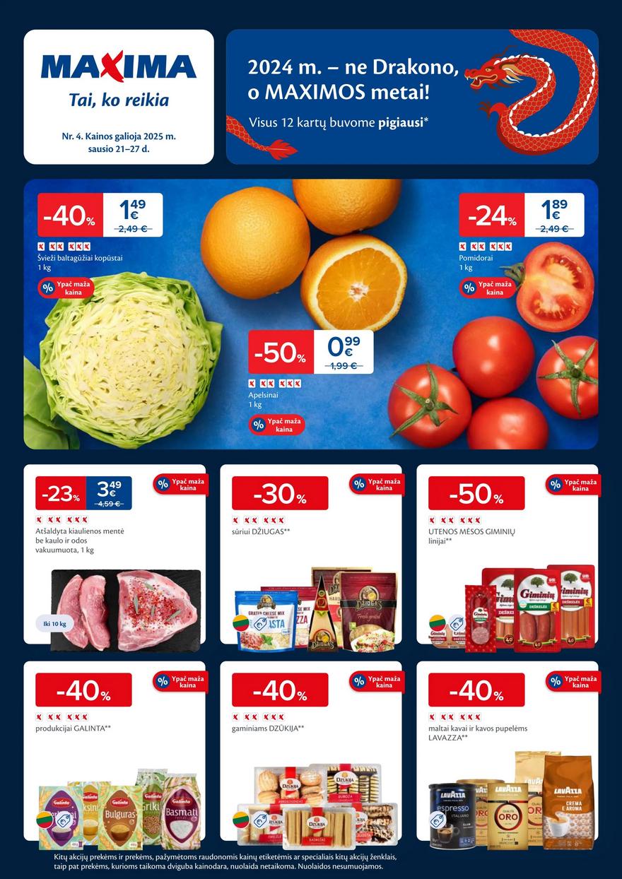 Naujausias Maxima leidinys Nr 4 ir kitos akcijos vienoje vietoje (galioja nuo 2025-01-21 iki 2025-01-27) Antradienio nuolaidos maximoje. Naujas akcijų ir kainų leidinys.