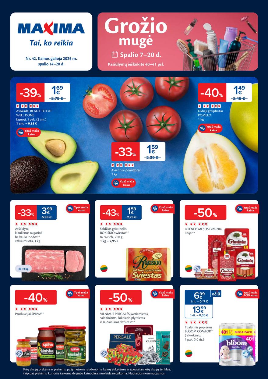 Naujausias Maxima leidinys nr 42 ir kitos akcijos vienoje vietoje (galioja nuo 2025-10-14 iki 2025-10-20) Savaitės pasiūlymai Maxima parduotuvėse. Naujas antradienio akcijų leidinys su aktualiais kainų pokyčiais.