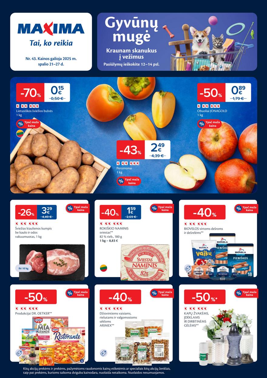 Naujausias Maxima leidinys Nr 43 ir kitos akcijos vienoje vietoje (galioja nuo 2025-10-21 iki 2025-10-27) Antradienio prekybos tinklo Maxima akcijų leidinys. Naujos šios savaitės nuolaidos.