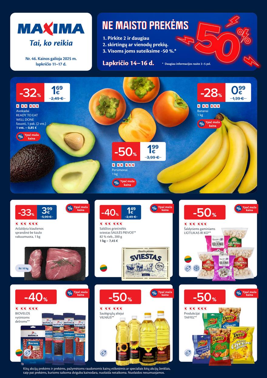 Naujausias Maxima leidinys Nr 46 ir kitos akcijos vienoje vietoje (galioja nuo 2025-11-11 iki 2025-11-17) Nuolaidos Maxima parduotuvėse nuo antradienio. Aktualūs savaitiniai pasiūlymai ir kainos vienoje vietoje.
