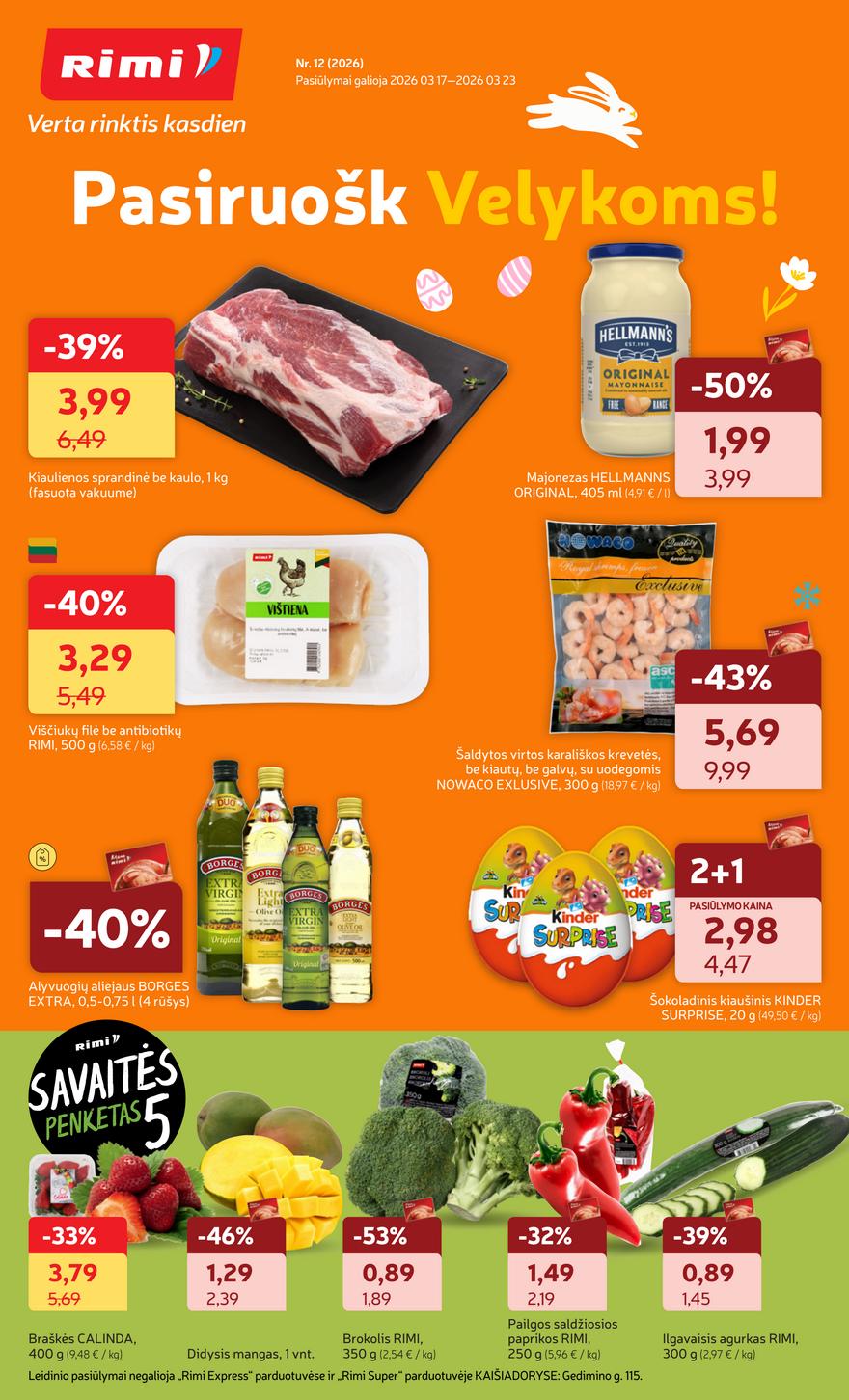 Naujausias Rimi leidinys Nr 12 ir kitos akcijos vienoje vietoje (galioja nuo 2026-03-17 iki 2026-03-23) Antradienio nuolaidos ir kainos Rimi parduotuvėse. Naujas savaitinis Rimi akcijų leidinys.