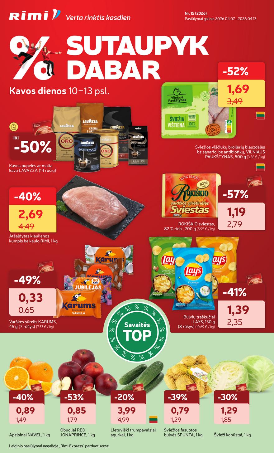 Naujausias Rimi leidinys Nr 15 ir kitos akcijos vienoje vietoje (galioja nuo 2026-04-07 iki 2026-04-13) Rimi savaitės pasiūlymų leidinys. Naujos nuolaidos prekybos tinklo parduotuvėse nuo antradienio.