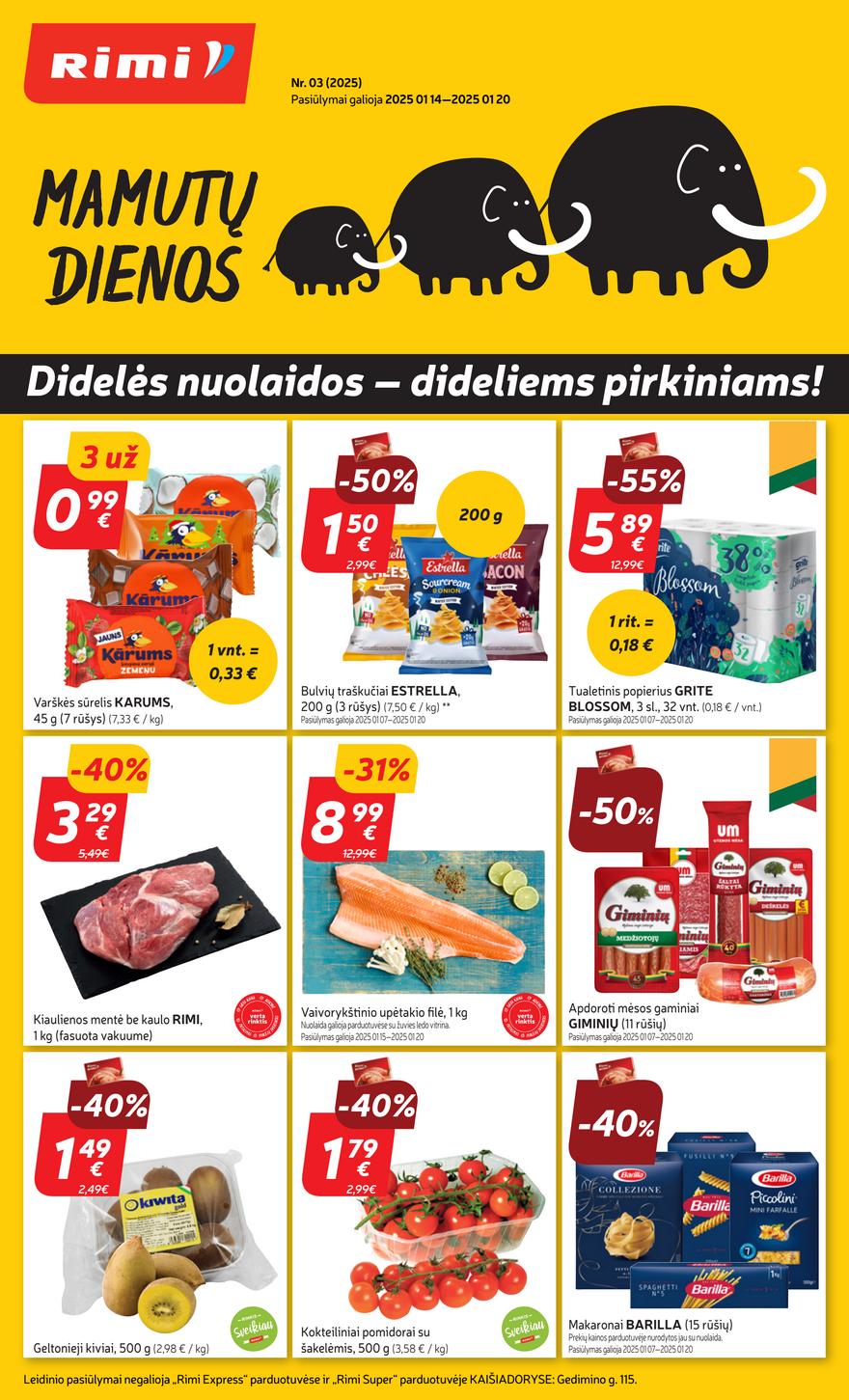 Naujausias Rimi leidinys Nr 3 ir kitos akcijos vienoje vietoje (galioja nuo 2025-01-14 iki 2025-01-20) Antradienio Rimi prekybos tinklo naujas leidinys. Geriausi savaitiniai pasiūlymai ir nuolaidos apsiperkantiems Rimi.
