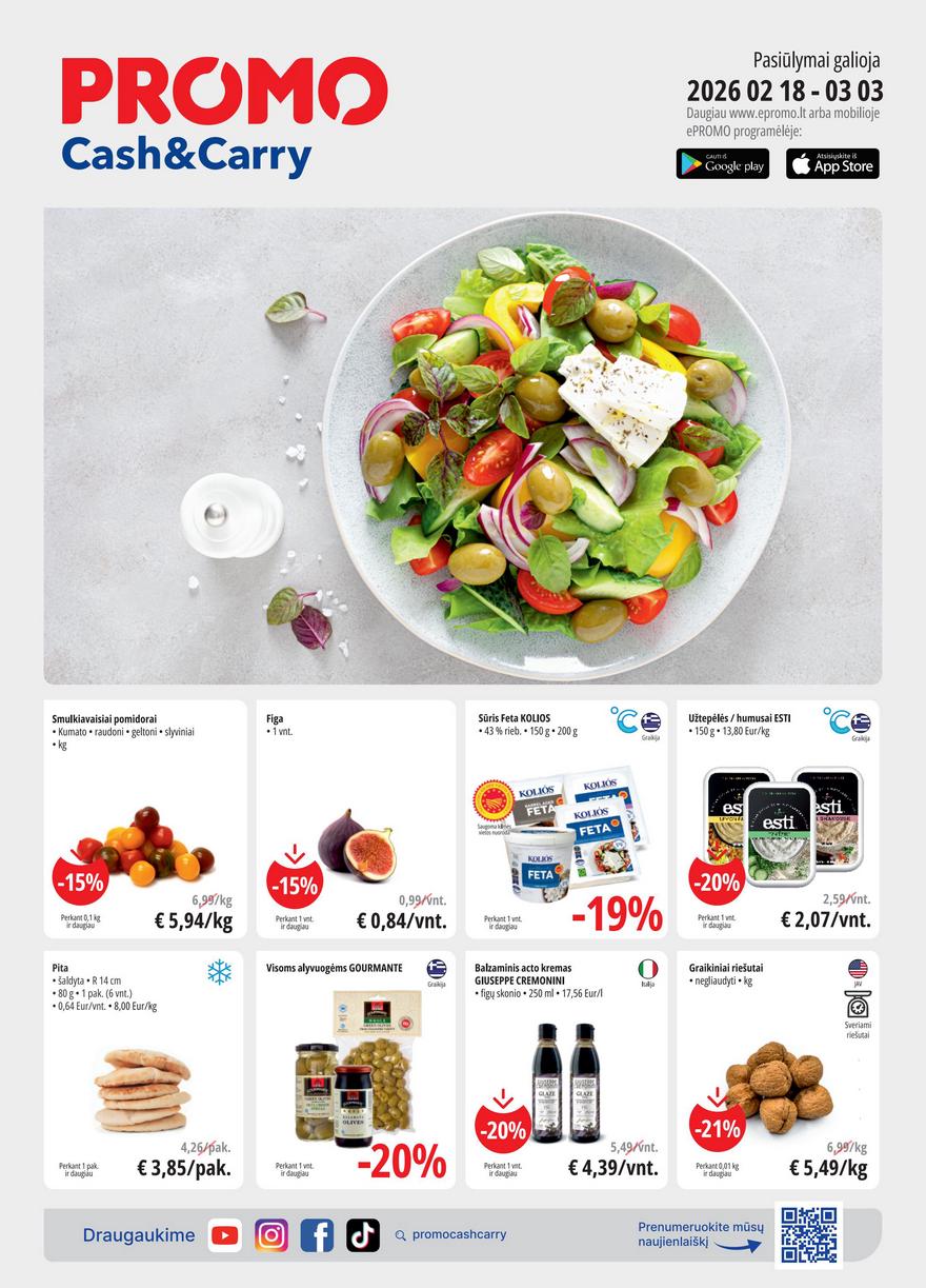 Promo akcijų leidinys ir kitos akcijos vienoje vietoje (galioja nuo 2026-02-18 iki 2026-03-03) Naujas nuolaidų ir asortimento naujienų leidinys apsiperkantiems Promo parduotuvėse.