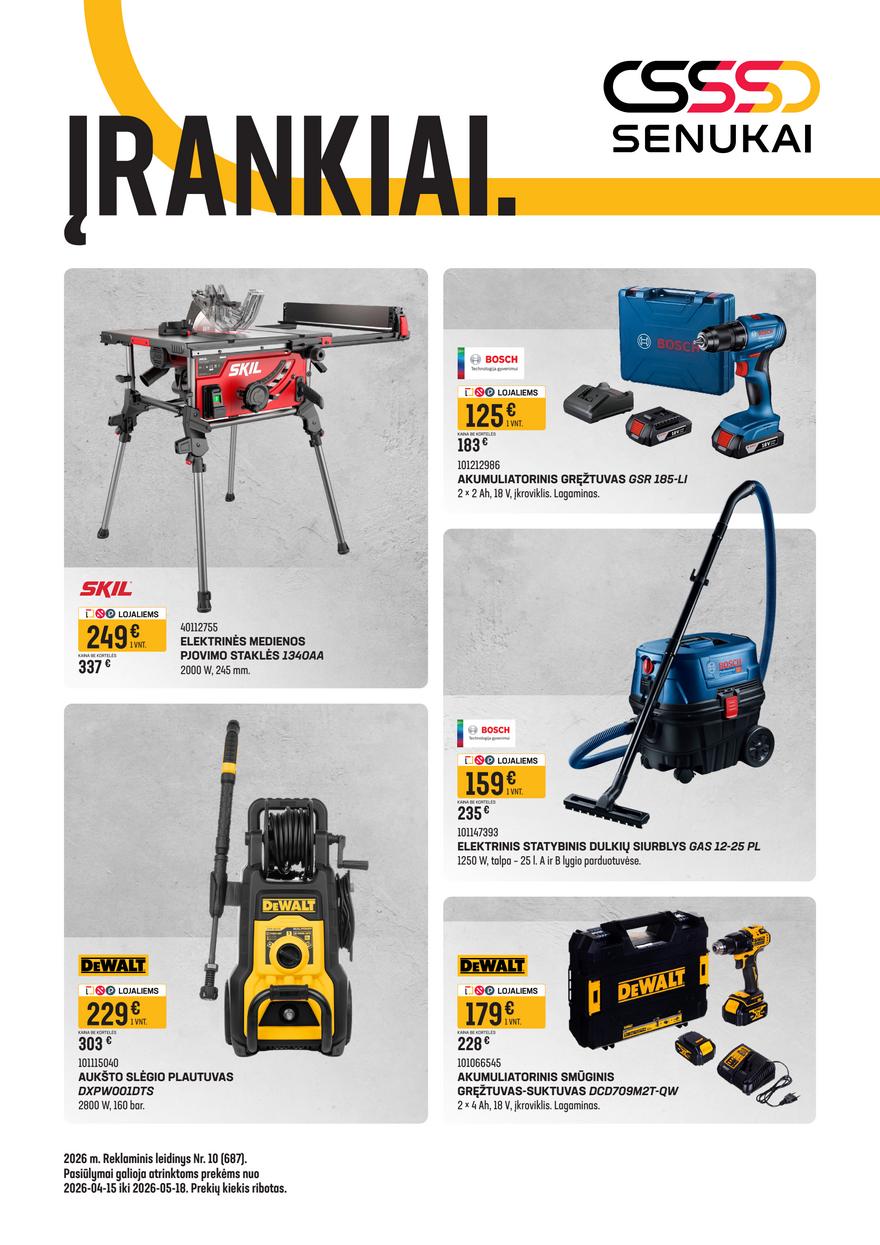 Senukai įrankių leidinys ir kitos akcijos vienoje vietoje (galioja nuo 2026-04-15 iki 2026-05-18) Nuolaidos ir kainos įrankiams Senukuose. Naujas mėnesio nuolaidų leidinys.