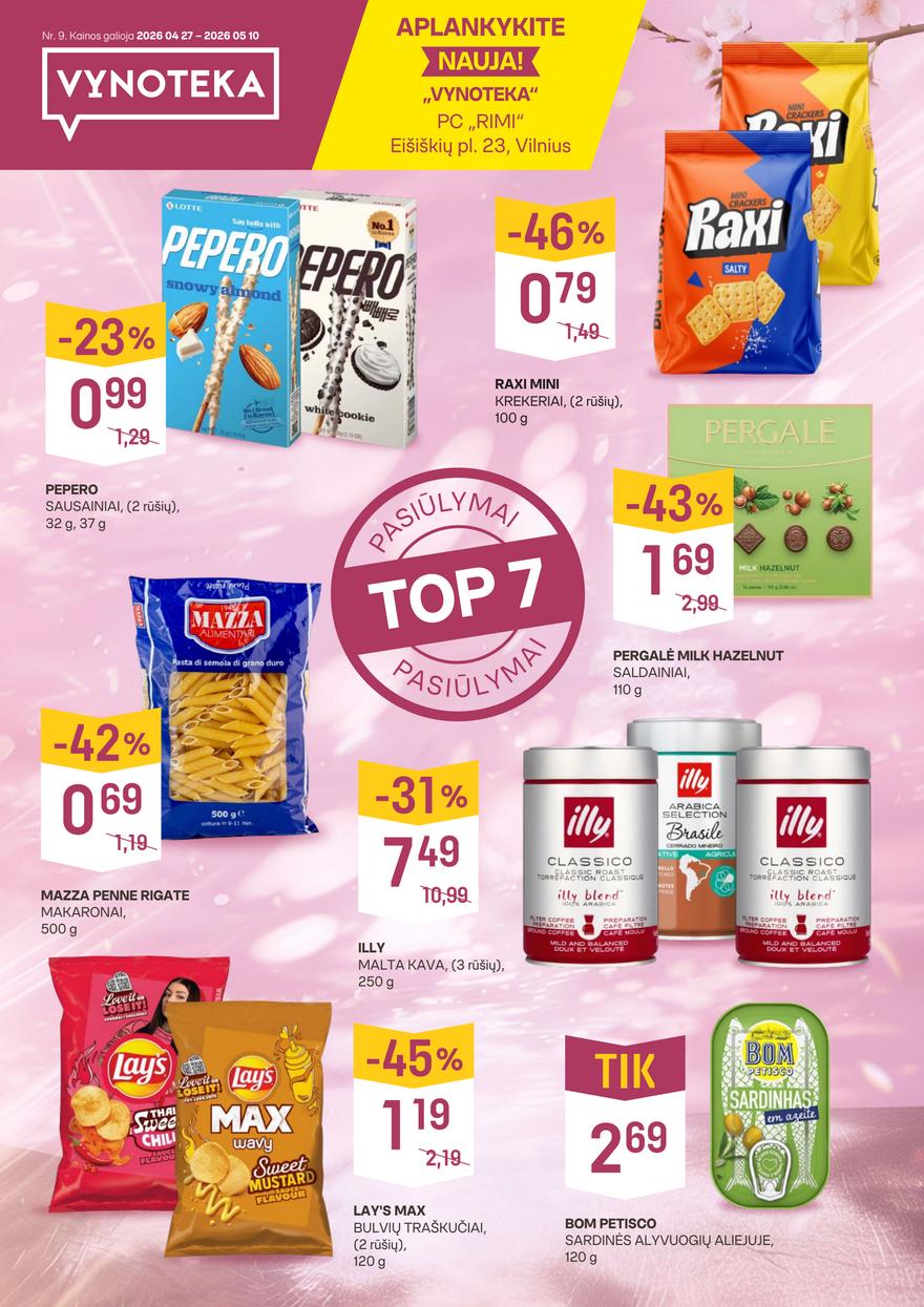 Vynoteka akcijų leidinys Nr 9 ir kitos akcijos vienoje vietoje (galioja nuo 2026-04-27 iki 2026-05-10) Nuolaidos Vynotekoje. Naujas mėnesio pasiūlymų leidinys. Pasiūlymai galioja nuo pirmadienio.
